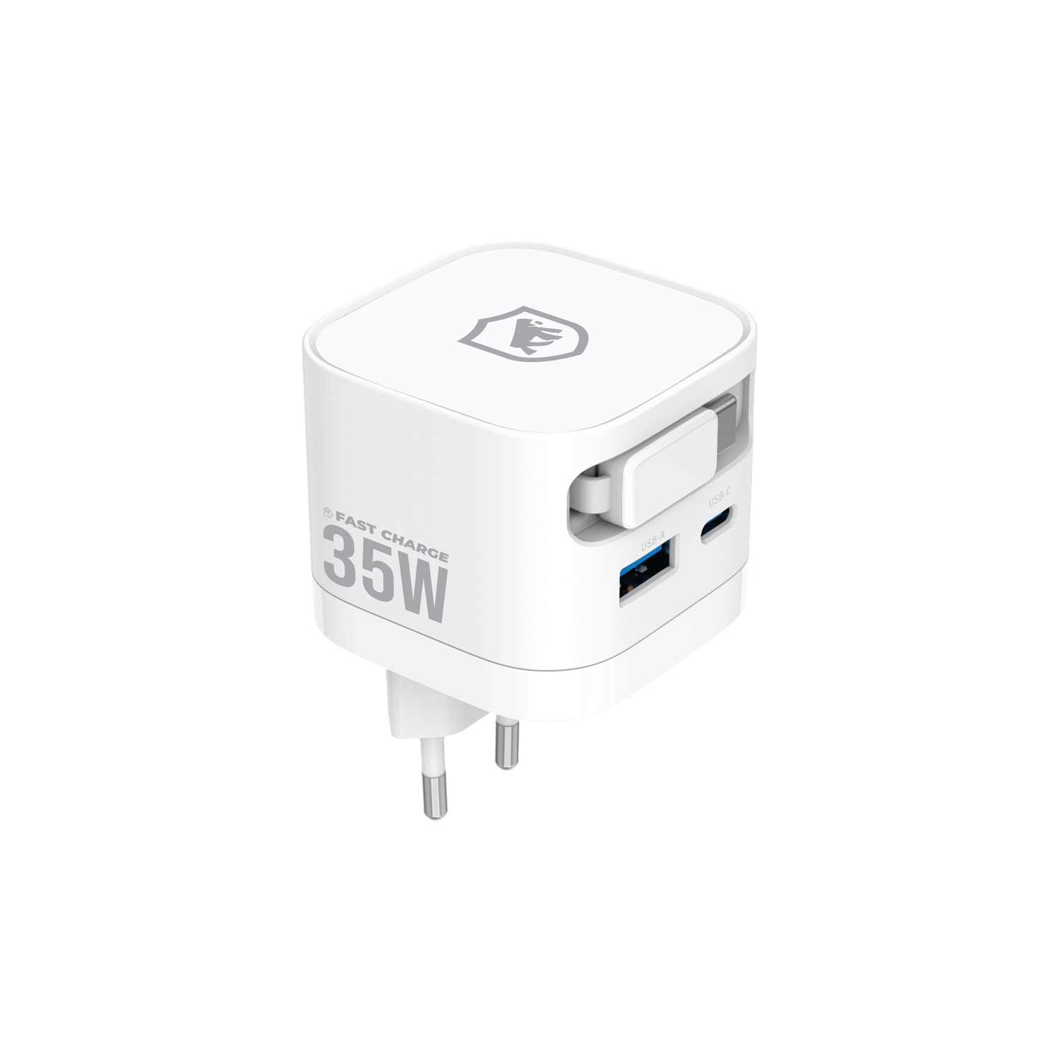 Além do cabo integrado, o carregador possui mais duas saídas adicionais: uma USB-C e uma USB-A, permitindo o carregamento simultâneo de até três dispositivos com distribuição inteligente de energia. Com isso, você pode conectar seu smartphone, tablet e fone de ouvido ao mesmo tempo - tudo com eficiência e estabilidade.
