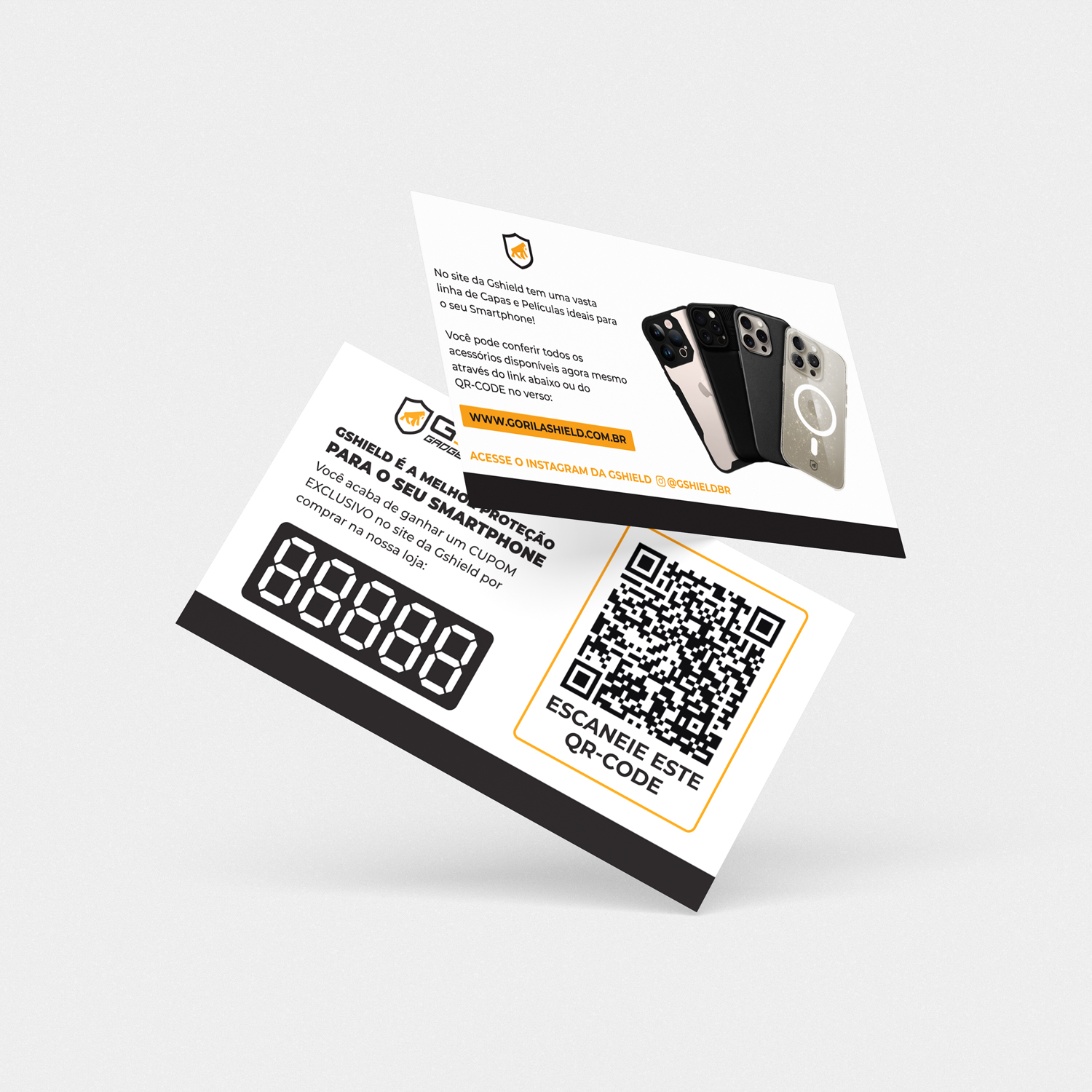 Cartão de Visita, voucher, desconto, promoção, lojista, aumento de vendas, fidelização, QR Code, tecnologia, acessórios de smartphone, proteção, capa, película, GShield, atração de clientes, compra online, experiência de compra, produtos premium, inovação, loja de acessórios, marketing digital, fidelização de clientes, loja online