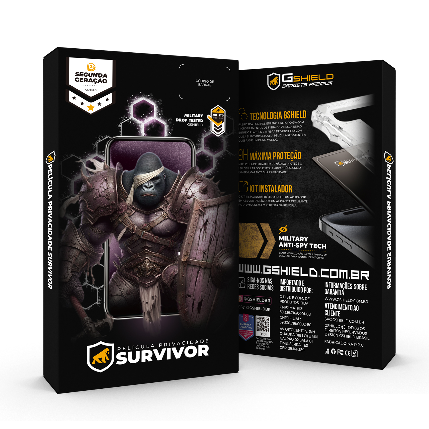 A Película Privacidade Survivor da Gshield é a solução definitiva para quem busca proteger a tela do smartphone com máxima eficiência e manter sua privacidade em qualquer ambiente. Desenvolvida com tecnologia de ponta, esta película de poliuretano de alta resistência com revestimento de d3-shield combina proteção superior, funcionalidade avançada e o benefício adicional de bloquear a visão lateral da tela, garantindo que apenas você visualize o conteúdo do dispositivo.